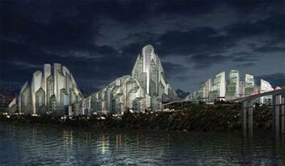 可能很多人還不知道這幢建筑,恰恰就是這樣如貝殼般形狀的建筑,整體采光率達到90%左右,如此高的采光率除了地理位置的因素外,整個建筑具有75%的透明度,內部所有透光面板均鋪設采光集熱板,屋頂10000多平米放置多達15000塊自動化光線跟蹤面板,另外配備風電補充系統,以至于實現整個建筑全天候運作實現供熱供暖供電的一體化,每年可節電100萬度,減少二氧化碳排放600噸左右,將降低整個建筑80左右的能耗。這個建筑有望在2011年建成并完善投入運營。 9. 重慶幻山商業中心區