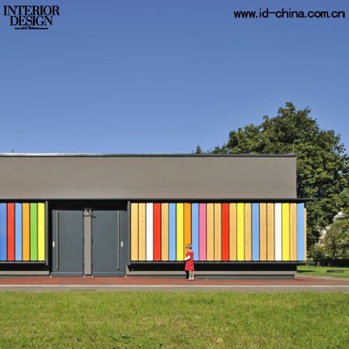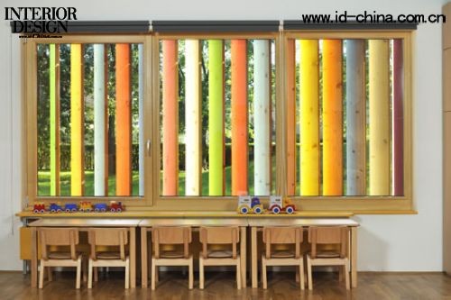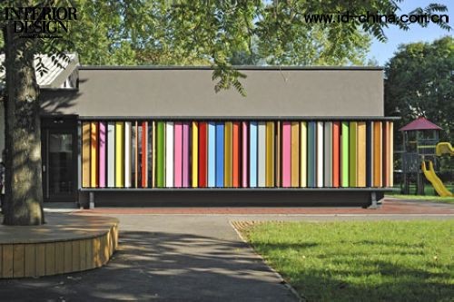 Kekec幼兒園別出心裁,把孩子們的色彩課堂搬到了幼兒園的外面。準確的說是來自斯洛文尼亞的Arhitekture Jure Kotnik建筑事務所在改造Kekec幼兒園時,把外墻設計成可旋轉的木質板條。板條的一面涂上顏色,另一面保持原木色。如果把所有原木色的一面都旋轉到內側,整個外立面便會呈現出彩虹般的色彩。顯然,彩色墻激發了孩子們的好奇心,只要輕輕一推,便會露出鮮艷的色彩,而且能改變整個墻面的樣子。Arhitekture Jure Kotnik的設計讓孩子們在游戲中認識顏色,于是Kekec幼兒園索性把這面墻當成色彩課的教學用具,看來建筑設計也是寓教于樂不可或缺的因素。