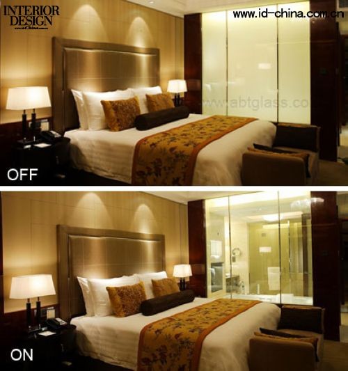 調光玻璃(浴智屏)作為星級酒店客房隔斷,客房不再狹窄壓抑。透明狀態寬敞明亮;霧化狀態享受私密。