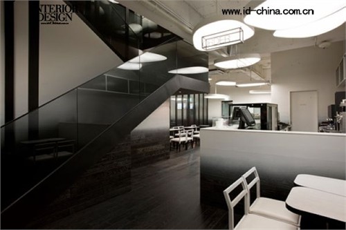 空間內部,從地板到天花是一種漸變的模式。從地板開始,一路向上,玻剝離感的墻面,空間內這些朦朧的因素支離了整個空間結構,處于室內的人好像站在沙漠的中央,也好像站在深色的舞臺之上。設計師希望透過干凈簡潔的結構展示出空間的進深,因此沒有在結構上作任何的改變,保留了空間原有的細部結構。客戶希望設計能夠達到“藝術地飲吧”概念,當把中央的射燈打開的時候,皎潔的光線如圖月光一樣,留給空間的只有那份甜美的安謐。