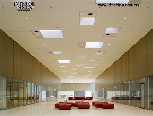 餐飲區結合了陶瓷金屬鹵素燈墻照明裝置,以及裝飾性鹵素吊燈和T5熒光穹燈照明風格。在行政餐廳部分,采用了GE 35W圓形鹵素吊燈,為餐桌提供直接及間接照明效果。在上層大堂區域,采用了GE 35W CMH® G12 4200 K燈具,補充日光照明。在容納1000人的會議廳,采用了GE 24W T5 4000 K熒光照明及鹵素射燈,通過獨立的調光線路,為各種活動提供靈活的照明方案。