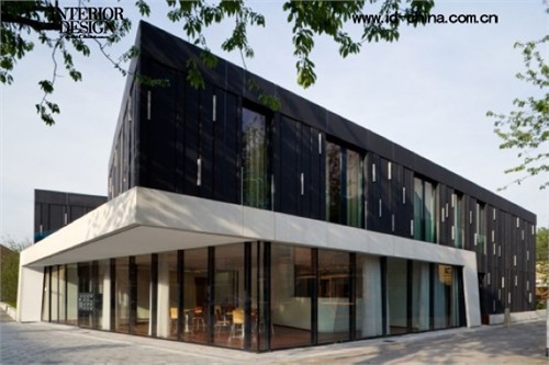 這座兩層樓的住房是為24名精神病患者設(shè)計的,位于一個現(xiàn)有的社區(qū)中。其中,12個人分兩組居住,另外12個人住在獨立的單元內(nèi),均配備了醫(yī)療設(shè)施和一組看護者。 設(shè)計這個住宅的初衷是將精神病患者盡可能地融入到社會中。為了提高人們對這些患者的接納程度,患者與社區(qū)之間的交互活動受到了控制,也為他們提供了一定的私密性。白色的混凝土平臺和密集種植的樺樹讓場地更加規(guī)整,夏季這些樹木提供了遮擋,冬季掉了葉子后又讓更多的光照進入到室內(nèi)。住房本身用黑色混凝土包面,成為這些樹木的背景。住房的一角,白色平臺向上提升,構(gòu)成一個大塊的完全打開的空間,與周圍公共空間相融,并設(shè)置了一個會面就餐的房間。主入口也放在了這里,并以折疊的墻面引導(dǎo)著人們進入,進入到底層的大廳和患者各自的房間以及入口上方的屋頂平臺。