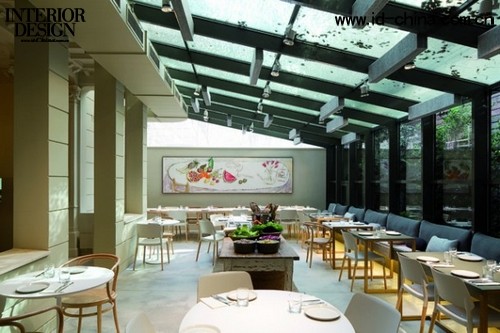 來自西班牙巴塞羅那剛剛開的Mordisco餐廳,由Sandra Tarruella 室內設計公司完成,非常令人賞心悅目,進到里面映入眼簾的就是墻上掛著的彩色粉筆勾勒的美食圖,還有天棚上的玻璃窗映射下的自然光與其投射在餐廳里的倒影互相輝映。這個老住宅非常清楚的呈現了納維亞人的時尚感,不過這家餐廳還保留一些傳統的東西,如寬敞的樓梯和高高的天花板。店內清爽、明亮,陽光透過玻璃天窗照進餐廳,庭院內種了一些新鮮蔬菜,融入了更多綠色,內間的環境也非常適合朋友聚一起聊天談事。