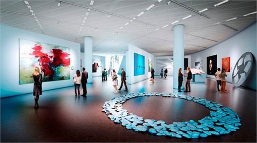 這座博物館將由5000平方米的展廳和7000平方米的花園露臺(tái)組成。室內(nèi)天花板的最低點(diǎn)高5.5米,讓展廳可以展出任何形式和規(guī)格的展品。高8米的中庭可以用來(lái)懸掛特殊的藝術(shù)作品,并促進(jìn)了上層畫廊的空氣流通。規(guī)律排列的室外表皮面板讓室內(nèi)的參觀者可以透過(guò)玻璃幕墻感受到充足的自然光線。細(xì)長(zhǎng)的鋁制鑲板組合成猶如羽翼的遮陽(yáng)罩,避免自然光直接照射進(jìn)展廳內(nèi)。