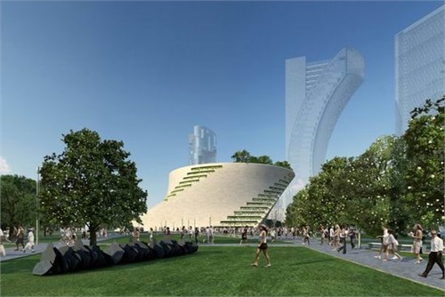 五個(gè)方形樓板依次連續(xù)旋轉(zhuǎn),創(chuàng)造了一個(gè)流動(dòng)的幾何形體。這個(gè)方案的靈感來(lái)自于達(dá)芬奇的維特魯威比例人,扭轉(zhuǎn)的形體強(qiáng)調(diào)了那些已經(jīng)深入到米蘭人日常生活中的設(shè)計(jì)、時(shí)尚和家具設(shè)計(jì)潮流和概念。規(guī)劃中的公共交通站點(diǎn)將把文化中心和繁榮的城市中心區(qū)連接在一起。