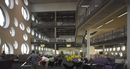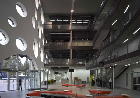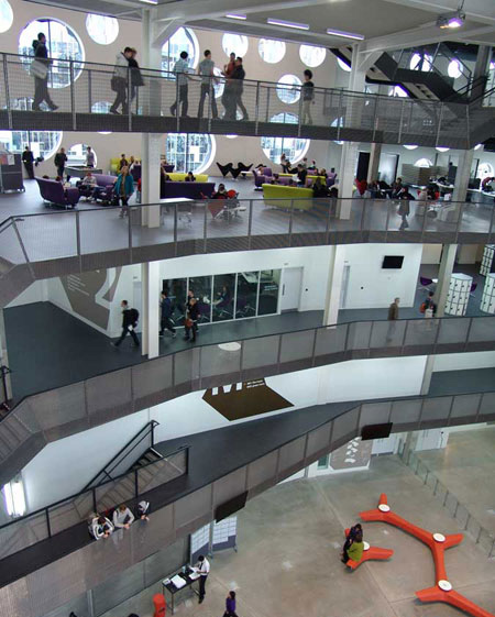 內部的分區以前庭來分隔,并以步行橋重新連接。這座建筑的內部總面積為2.15萬平方米,于2010年9月建成,合同價值4300萬英鎊。