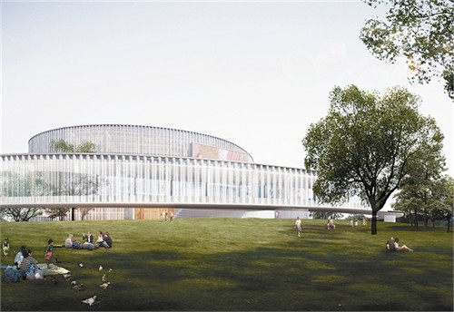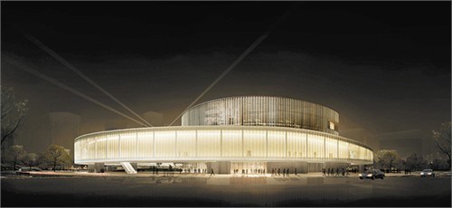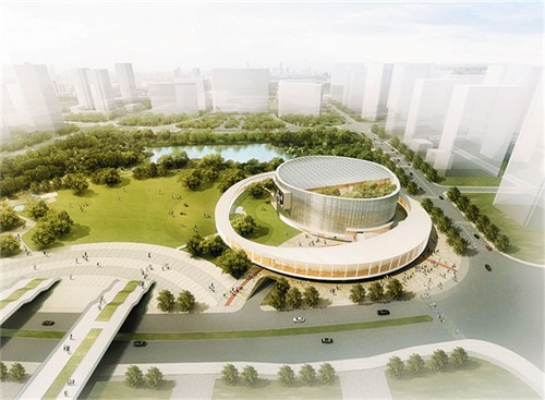 本方案由同濟大學、阿科米星建筑設計事務所(ATELIER ARCHMIXING)推薦。以“城市光環”為設計構思。總建筑面積近30000平方米,其中地上部分17365平方米,地下部分12365平方米,總高度30米(局部10-14米),總投資3.6億元,劇院規模1200座,影院規模5廳(450座)。