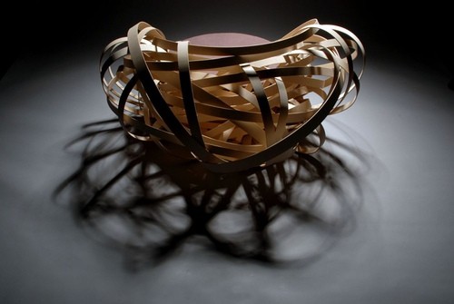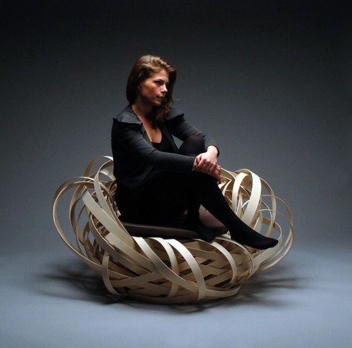 看起來像一種混沌的圖形,同時又像一個整體。椅子的組件包括一個基座,一個坐墊和四條金屬支腿。為了弄出亂蓬蓬的鳥巢的感覺,設計師用樺木條把椅子的支撐部件纏繞起來。可以想象,這個椅子非常難做,要反復嘗試,才能獲得最漂亮的樣子。