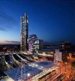 福斯特事務所在靠近克羅伊登東站的占地3.6公頃的拉斯金廣場(Ruskin Square)地帶設計了14萬平方米的辦公空間和600套住房,其中AHMM公司負責住房部分的細節設計。