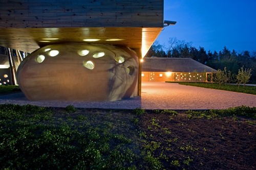 名為“友鄰之家(Friend House)”的生態(tài)旅店,位于奧里兒河畔一塊3公頃的森林度假區(qū)內(nèi),離烏克蘭Dnepropertrovsk市30公里遠(yuǎn)。旅店占地1750平米,只有一層建筑,還有一個(gè)開敞的院子,停車場(chǎng)和花園。