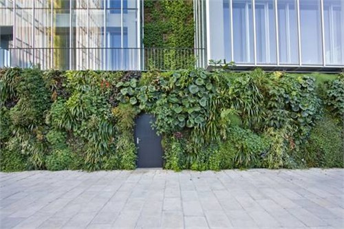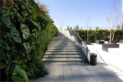 外墻:為塔樓臨廣場的群房設置了3面垂直花園。留出窗和門的開口。廣場有落差,因此形成了有趣的景象,并集成多種功能。北墻沒有陽光,因此植物以耐蔭植物為主,比如芋科的,蕨科的,海棠科的某些植物,再點綴彩葉草和吊蘭,配上大葉子的龜背竹之類的,很有熱帶感覺,像濕潤的雨林。而在陽光充足的南墻,種上了比其它墻面更絢麗的開花植物,比如天竺葵,風鈴,馬纓丹,還有一些華麗的十字花科植物,配以官也植物。設計師也確保了墻面的輕質。因為面積還算蠻大的。