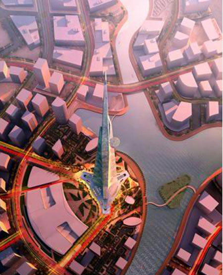 據悉,王國大廈的造價約為12億美元,而整個王國城項目的造價將達200億美元。Adrian Smith表示,這座大廈是一座細長的不對稱的建筑,看上去似乎是從地上長出來的一叢葉子,煥發出生命力,預示著其周圍還有更多的新工程要"生長"出來。