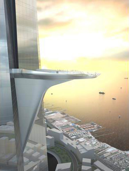 這座被稱作"一英里高的大廈"其高度將超過1000米,至少比現在的世界第一高樓迪拜的哈里發塔高173米。預計電梯需要12分鐘的時間到達頂層。