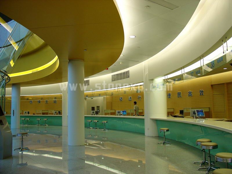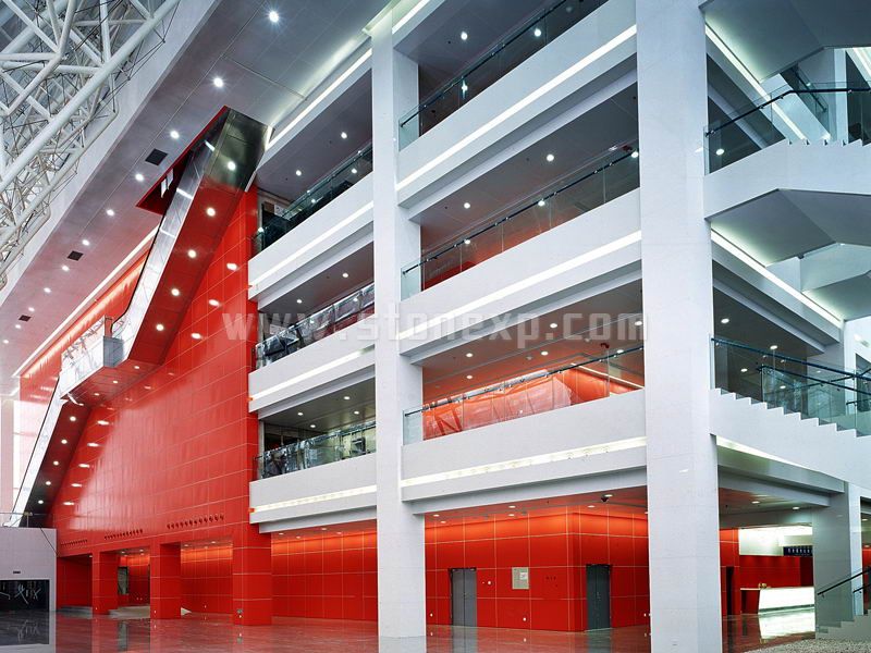 外墻裝飾工程采用干掛石材、鋁板幕墻、玻璃幕墻;室內裝修施工,墻面采用鋁板、石材、涂料、瓷磚等;地面采用石材、地毯、木地板、地磚、地坪漆等;頂棚裝飾采用石膏板、微孔鋁板、鋁條板等。
