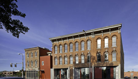 SubCat音樂(lè)工作室位于紐約的Skaneateles,開(kāi)張已經(jīng)有10年,是一個(gè)規(guī)模不大但非常成功的工作室。現(xiàn)在,在紐約的FMA事務(wù)所(Fiedler Marciano Architecture)的設(shè)計(jì)下,一座19世紀(jì)的建筑被改造成一個(gè)現(xiàn)代的多文化藝術(shù)中心,并成為SubCat工作室的新家。
