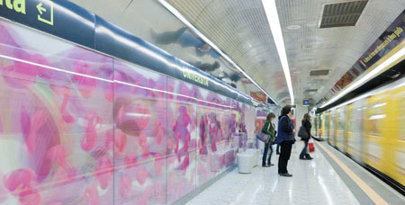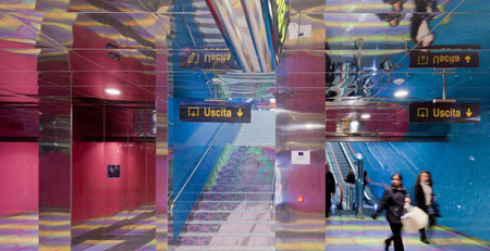 乘坐升降梯下到站臺的乘客將從繁忙的廣場進入到一個充滿藝術品和符號的藝術世界中。抽象的影像讓每個人根據自己的理解來看待周圍的環境。站臺的臺階上有著但丁和比阿特麗斯的抽象派肖像。突出的灰色和粉色標記為乘客指引著方向,幫助他們抵達最終目的地。