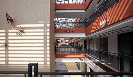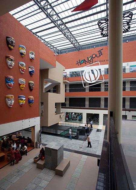 在各個空間里,內外部立面上安裝了雕塑般的藝術品,增添了獨特的藝術主題。每一個樓層都有突出的景觀露臺。為了與傳統的印度街道和可靈活穿越的空間相對應,中庭被分割成精心布局的一個個小單元,滿足了顧客的需求。