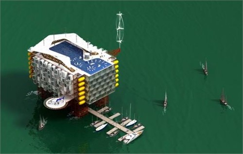 建筑師表示,這一富有創(chuàng)造性的想法巧妙地體現(xiàn)了我們對化石燃料的一種厭惡,同時為潛泳、釣魚和航海提供了一個酷勁十足的場所。風(fēng)能和波浪能將負責(zé)為這個度假勝利提供電力,客房的設(shè)計則從藤壺身上獲得靈感,依附在船只一側(cè),并且擁有在遇到惡劣天氣時可以收回的陽臺。