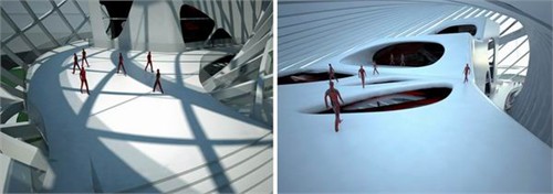 (左)室內(nèi)“街道&rdquo(右)上層“街道”可以俯瞰底層空間