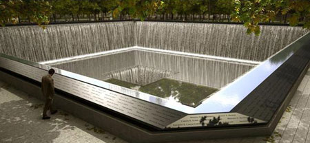 由Michael Arad和景觀建筑師Peter Walker設(shè)計(jì)的"9.11紀(jì)念地"工程將在紐約"歸零地"揭幕,時(shí)值此次恐怖事件發(fā)生10周年,當(dāng)時(shí)遇難人數(shù)近3000人。