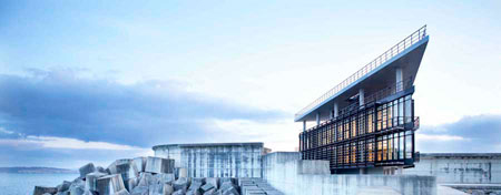 Díaz y Díaz Arquitectos西班牙加利西亞省的Ferrol設(shè)計(jì)了一座港務(wù)局控制和服務(wù)中心。它的樓層面積為2130平方米,好像一只船的船首,正等待起錨遠(yuǎn)航。它位于Ferrol海港外圍的大塊巖石上,能夠看到港灣海口的景色。