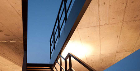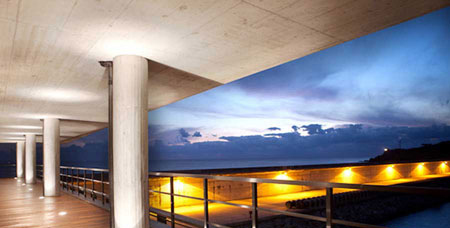 為了應(yīng)對大壩自身的幾何形狀和周圍的景觀,控制中心采用了海上建筑所具有的特點(diǎn),外部的坡道體系將大壩的海墻與上到屋頂?shù)耐ǖ乐g的高度差異給化解了。