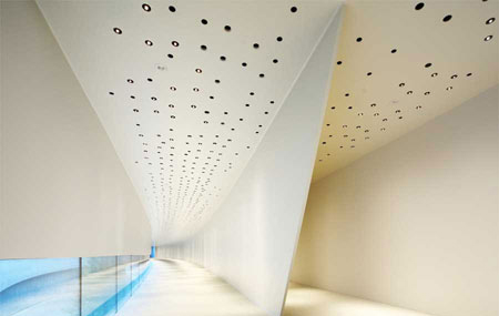 在館內,人們可以根據傳統的次序欣賞每一幅油畫,也可以隨性地沿著微微彎曲的空間布局自由選擇參觀。只需一瞥,所有油畫所在位置盡收眼底。沿著場地縱向延伸的展館長度有100米,參觀者可以連續地欣賞超現實主義的畫作。展館的盡頭便是充滿自然光照的景觀視野。另外的展館也有著同樣的風格,但是分區和自然光照等要素不太一樣。