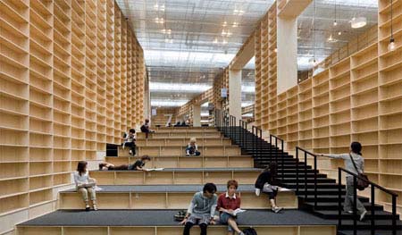 作為日本一所著名的藝術類大學,武藏野大學的新圖書館是由一座現存建筑改造過來的,并將圖書館與美術館做了重新整合。圖書館如同一座巨大的方舟,設置了20萬個單元,其中10萬個單元是開放式的檔案館,另外一半是封閉式的檔案館。兩層樓的圖書館總樓層面積為6500平方米。