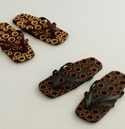 運用竹中空的自然狀態,做成拖鞋。一方面增加了拖鞋的時尚感,另一方面,竹子中空的狀態對足部起到按摩作用。