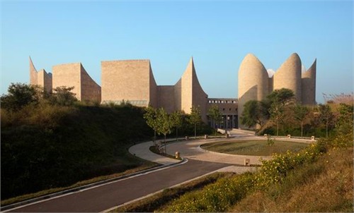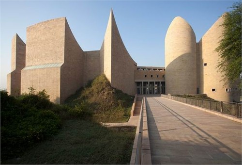 這個項目的西半部分包括一個入口廣場,禮堂,圖書館和可交換的展覽空間。而在東半部分,設置了一些擁有永久展品的畫廊,它們起伏的屋頂模仿了喜馬拉雅山的形狀。展廳建筑上的五瓣屋頂代表了錫克教教義中的五種美德。拱廊和混凝土柱子支撐起了整個外表皮,同時還裝飾了彩色的gwalior石材。不銹鋼材質的屋頂根據不同的天氣狀況,反映出多種多樣的形式,而從峽谷穿過的河流為建筑群引入了一個引人入勝的水上花園。