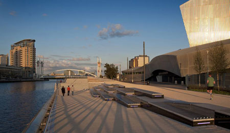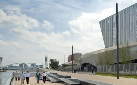 位于曼切斯特北部皇家戰爭博物館前方的一座新碼頭已經建成。這是2010年由FoRM Aociates(FoRM)設計的Irwell河畔公園總規的第一部分。長8公里的河畔地帶連接了索爾福德、曼切斯特和特拉福德。
