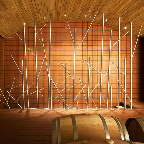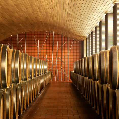 改變并重新粉刷維加-西西里的酒窖。這個方案實施的前提是空調隱藏在天花板,將燈藏在房梁里。這樣做可以讓整個空間看起來更加整潔通透以容納更多酒桶。