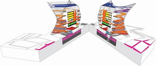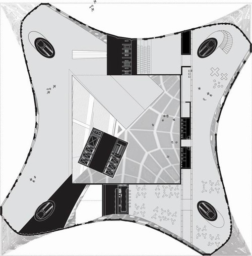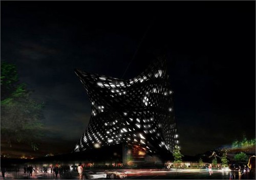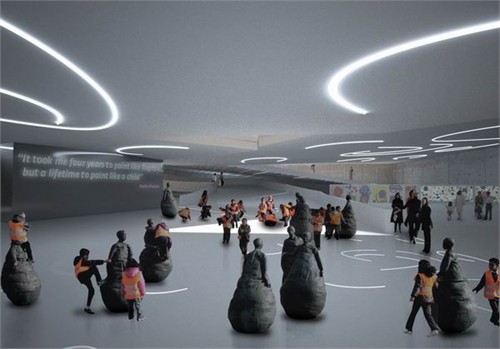 葡萄牙建筑事務所OODA憑借他們設計的方案獲得了臺灣“新北市立美術館概念設計國際競賽”的優選獎。這個項目位于臺灣臺北市,建成之后的美術館將成為城市中心區的新地標性建筑,所以需要一個創新的先鋒設計概念。由OODA設計的方案包含兩個超立方體;一個90度直角的立方體被放置在一個稍大一點的扭曲的方盒子中。參觀者要通過懸掛在頭頂的拱形外表皮和垂直電梯進入美術館內部。