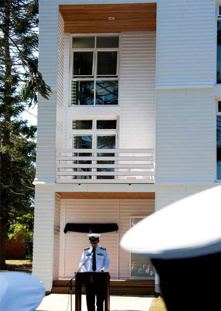 格里菲斯住屋(Griffiths House)位于悉尼以南的杰維斯灣,建于1915年,當時是皇家澳大利亞海軍學院的所在地,為那里的官員提供短期住宿。它包括32套單人間以及共享的浴室和平臺等設施。白色護墻板建筑坐落在修剪過的草坪和花園當中,成為一處受到保護的地產項目。
