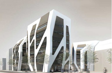 位于地塊邊角的建筑是一個(gè)小型的城市庭院,有點(diǎn)像中世紀(jì)城市的典型結(jié)構(gòu)。每座建筑之間的通道相互連接,并與公共區(qū)域相連,成為城市網(wǎng)絡(luò)中的一個(gè)重要節(jié)點(diǎn)。混合用途的設(shè)計(jì)構(gòu)成了靈活的設(shè)施,并與現(xiàn)有城市背景無(wú)縫連接。立面采用多邊形,構(gòu)成了三維的感覺(jué),形成一組雕塑般的楔形外觀(guān)。