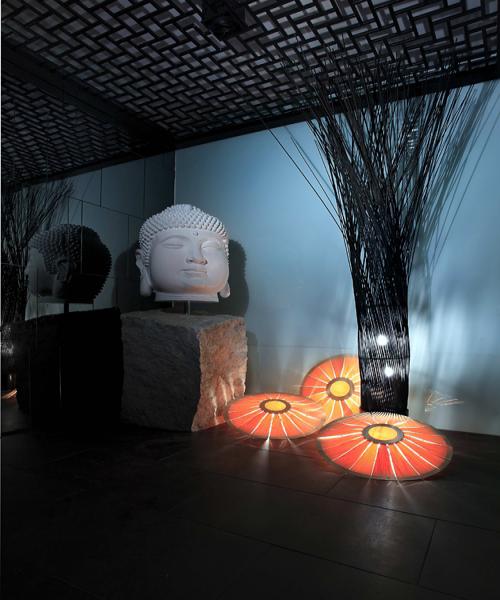 正對大門的玄關被做成一面掏空的墻,正好對應了佛界中“萬物皆空”的理念。走過玄關,即看到獨具特色的接待區,這里的背景墻、古滕、LOGO的形成一幅頗具禪意的醉人畫卷。而茶室則以黑白為基調,同時也采用了裝飾性很強的線條,強調了古典的氣質。圈椅、古滕、吊燈,還有情景怡人的花草,營造出一種溫婉和諧的黯然情趣,裝點著清新淡雅的心境。“靜茶”香格里拉沒有金碧輝煌與夸張化的裝飾,卻多了滿室的靜宓與禪意,以及時光流轉的醇厚滋味。這些鮮明的人文特色,透過仿若嫻靜禪鳳般的迷人意境,成為本案最淋漓盡致的旁白方式。