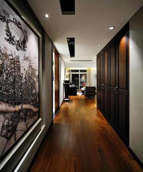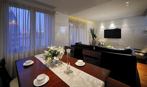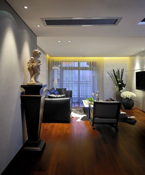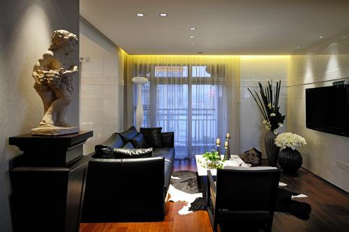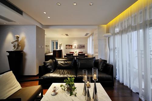 推開大門,古典藝術(shù)品,在燈光下靜靜地注視著傍晚美麗的江景,先為時(shí)尚空間注入暖暖的情意。暖色的自然原木地板,精心挑選的大面積白色理石,天然的石材紋理如江水的漣漪,暗合主人的親水情結(jié)。黑色的皮草和白色花藝,造型很當(dāng)代的白色裝置藝術(shù),一片和諧雅致。白紗外的江景也能借景,作舊的煙草色古代航海地圖,既點(diǎn)綴了空間,亦添增玩味。