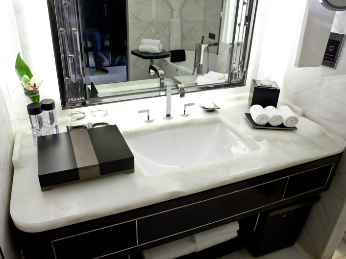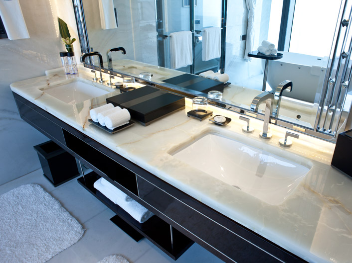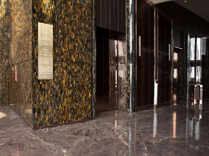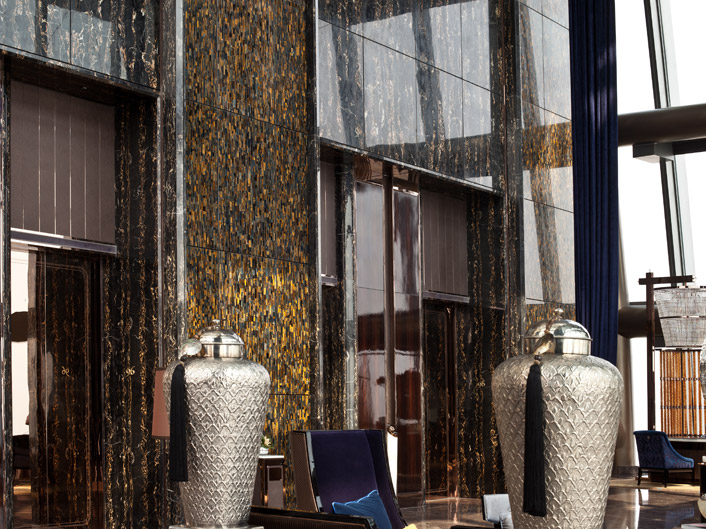 石材品種: 黃藍虎眼 白玉石 黑金花 蜘蛛玉 春天玫瑰 法國紫彩 亮點:黃藍虎眼石大面積裝飾墻面 概述: 瑞吉酒店的歷史起源于黃金時代的紐約,由財力雄厚的精英家族所構建而成的首個貴族階層逐漸成型。卡內基、范德比爾特和洛克菲勒等名流是其中的佼佼者。 艾斯特家族就是這一新興社會階層的領導者,而 Caroline Astor 夫人則是這個上流社會的社交名媛。聰明過人、毅力非凡的艾斯特夫人在精心挑選合作對象之后創立了首個真正代表紐約的社團,這就是著名的“精英 400 ”。 融合了恒久精致與現代奢華,瑞吉品牌堅定不移地信守其對于卓越的承諾。自從 John Jacob Astor 在一個世紀前于紐約創立地標性的瑞吉酒店以來,瑞吉均位于全球最佳選址,以其無與倫比的奢華、妥帖周到的服務和典雅高貴的環境聞名于世。度身定制的服務與休閑設施,風光怡人的選址以及充滿當地色彩的豪華裝飾,盡顯瑞吉享譽全球的獨特之處,吸引了全球旅游者的關注。 深圳瑞吉酒店位于深圳的新地標京基100上。京基100是一棟集國際商業中心,5A超甲級寫字樓、超五星級酒店于一身的地標建筑,為全球最具遠見與創新意識的專業人士,提供一體化的國際金融辦公與生活環境。主樓高度441.8米,地上98層,地下4層,成為全球第八高摩天樓。該建筑首層大堂、公共區域及酒店部分均由我司加工,分別用料為:羅馬洞石墻面2萬多㎡;意大利木紋石地面13000㎡;白玉石客房2300㎡。現京基100由我司圓滿的完成供貨任務并及時交付使用,得到了甲方認可并送了我司優秀合作單位稱號。 |