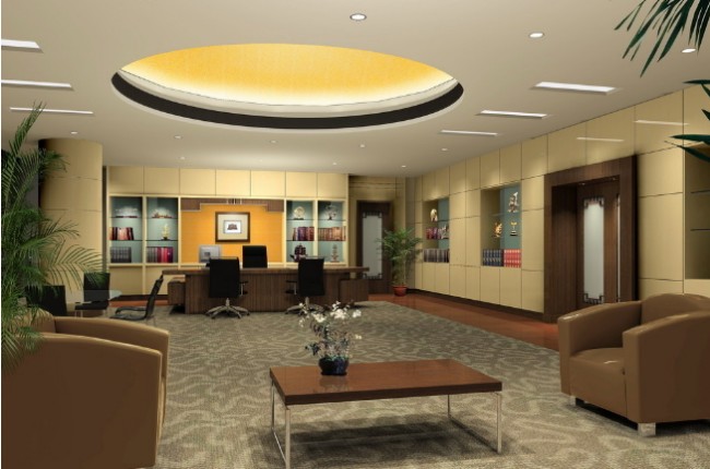 室內的一切裝飾、設施,包括一個花盆、一個掛件都要體現為我所用的原則。沙發的擺放應圍成一個U字型,型口朝著老板臺,形成一個向心力與凝聚力。
