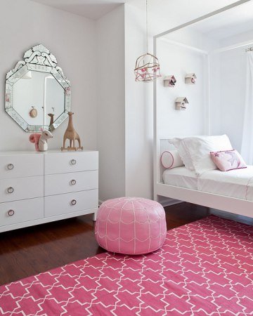 怎么裝飾兒童房間呢,這是一個非常大的難題,由于要考慮到孩子的后天環境形成的性格,所需要的顏色以及裝飾品都會有所不同,這樣才會更加發揮到孩子們的智力。現在介紹的是粉紅色的女孩房間,整潔大方,粉紅與白色的相隔裝飾,非常可愛。