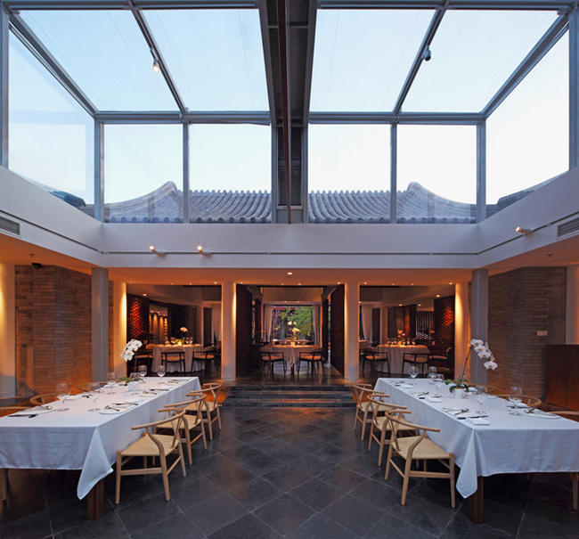 中國建筑事務所非常建筑最近完成了北京“京兆尹”餐廳設計,這是一座四合院里的素食餐廳。為了突出愉悅宜人的就餐環境,建筑師張永和延續了他對四合院空間的研究。兩個庭院作為餐廳的核心焦點空間,其中一個保持原貌,作為室外空間;另一個添加了玻璃屋頂,成為就餐區。懸掛的八面體屏風創造親密飄淼的空間氛圍。