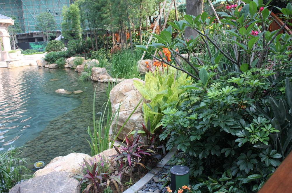 她又不經(jīng)意間彰顯中國風(fēng)骨。3級12疊疊水臺玄機(jī)算盡,自最高處一曲流水坎坷而下,傾斜在園林的中軸線上, 3級臺地,8大庭院,18處美景,層層遞進(jìn)、柳暗花明。又似一座朝代不明的皇家大宅飛躍時光,被鎖定在這片吐納靈氣的樂土之上。可憐,可愛。
