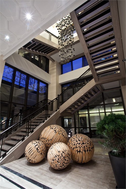 整個(gè)售樓處置于水景之上,鳥(niǎo)籠、木頭、樹(shù)枝點(diǎn)綴其中,映射了東方古典文化的同時(shí),使得整體空間更為幽靜和靈動(dòng),你似乎能在這里清晰的聽(tīng)見(jiàn)水滴叮當(dāng)、鳥(niǎo)兒鳴叫的聲音。裝飾材料的應(yīng)用上大量采用原生態(tài)的木飾面及石頭,搭配茶色鏡面、亮面不銹鋼、棉麻布藝等,設(shè)計(jì)師盡可能的拉大材質(zhì)間的相互對(duì)比,以強(qiáng)調(diào)東方從古到今的文化發(fā)展。在傳統(tǒng)東方裝飾的設(shè)計(jì)風(fēng)格中,向其注入了新鮮的血液,恰到好處的呈現(xiàn)出另一種獨(dú)特風(fēng)味。