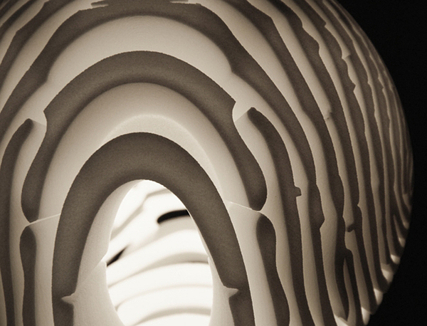 這些創意性的家居裝飾天花板垂飾燈罩來自以色列設計師Dan Yeffet命名為“Detail.MGX”,這個燈運用了設計者的指紋,讓燈光能夠從指紋縫中穿過。