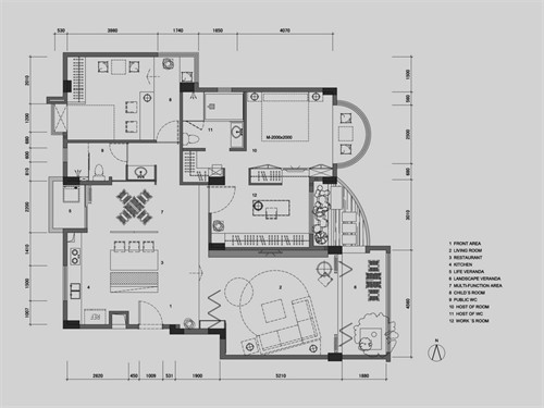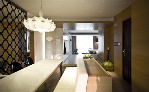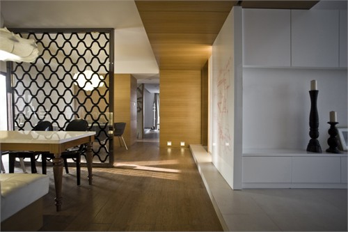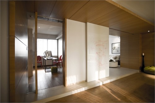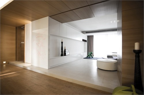 本案以長和方為基本母體的幾何體劃分各功能空間,使其各空間能享受到充足的陽光。室內空間開敞、內外通透,墻面、地面、天花一氣呵成,各空間的隔斷多采用靈活的折疊門,展現空間的靈活性與完整性,使得空間如此豐富變化。純粹的幾何形體縱橫生活之間,帶來視覺上的延展和張力;體現一種強烈的理性和象徵。