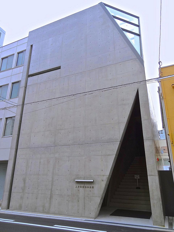 2012年4月,日本著名建筑師安藤忠雄完成了位于日本大阪的上方落語協(xié)會(huì)會(huì)館,這是一個(gè)完全免費(fèi)的設(shè)計(jì)項(xiàng)目。純凈的立方體混凝土建筑頂部斜切了一個(gè)三角形天窗,為室內(nèi)引入了自然光線,建筑師還用同樣的元素在首層設(shè)計(jì)了一個(gè)簡潔的三角形入口。這座建筑包含排練室和一個(gè)用來展示上方落語這種日本傳統(tǒng)曲藝的展廳,還有一個(gè)為了即將到來的hanjo tenma tenjin梅花節(jié)所準(zhǔn)備的活動(dòng)空間。正立面上的細(xì)條窗代表了落語藝術(shù)的古老象征書籍。這個(gè)方案大量借鑒了安藤早起的作品calve gallery。