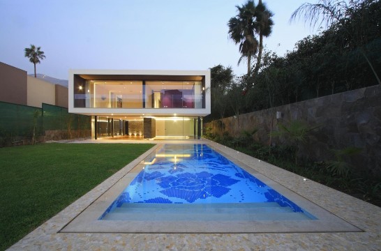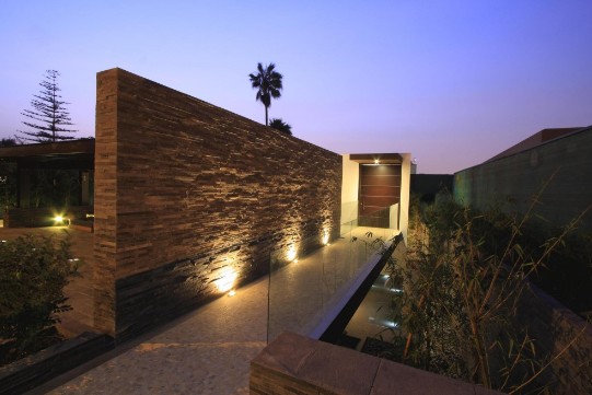 該項目是由Metropolis設計的。位于利馬市安第斯山脈的山麓,拉斯維加斯。該住宅共兩層,有五個停車位,相對街道±0.00標高車庫為-0.70米。二樓房間布局是:一個主臥室帶有兩個步入式衣帽間、浴室和露臺,另一間臥室帶有浴室和露臺,還有兩個帶有衛生間的臥室。在一樓有兩個臥室,客人浴室、客廳、住餐廳、廚房和用餐區。其服務區域和生活區域是分開的,有一個單獨的入口,其中包括洗衣設施和保姆房。該項目采用的都是天然材料如大理石。木材等。