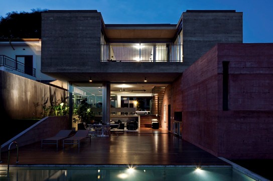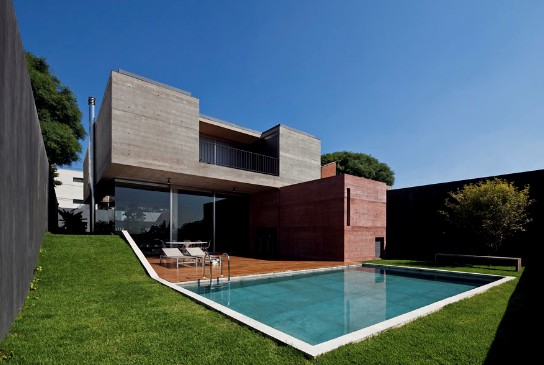 該項目是由UNA Arquitetos設計的,該住宅坐落的地塊二是個斜坡,六米的高差回鄰居的房子旁邊,從街上提供了大量的遠景。二樓懸挑出來的混凝土部分保護一樓的生活區域,從設計上空間變化與路面成不同的高度。