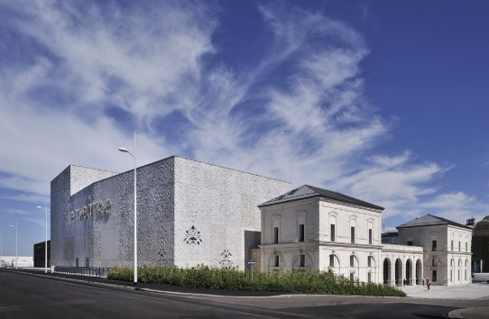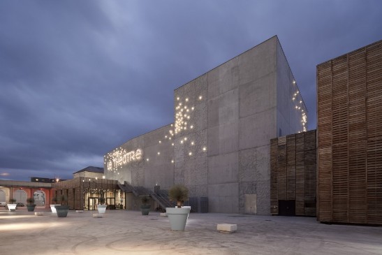 該項(xiàng)目是由K-architectures設(shè)計(jì)的。在整個(gè)劇院中隨處可見印花式的裝飾,這樣就創(chuàng)建了一個(gè)經(jīng)典的鏈接站和充滿浪漫的影院。鏤空圖案的外觀為室內(nèi)引進(jìn)柔和的光線,使得內(nèi)部空間顯得寬敞,天花板約高11.5米。觀眾通過原來的舊商場進(jìn)入到庭院的內(nèi)部,然后在左側(cè)穿過門廳通過主樓梯進(jìn)入禮堂。右側(cè)和左側(cè)的走廊分別通向一樓和二樓的禮堂,有530個(gè)座位。樓廳(296個(gè)座位)通過三樓的走廊訪問。禮堂內(nèi)采用紅色的天鵝絨裝飾,體現(xiàn)一種古典美。
