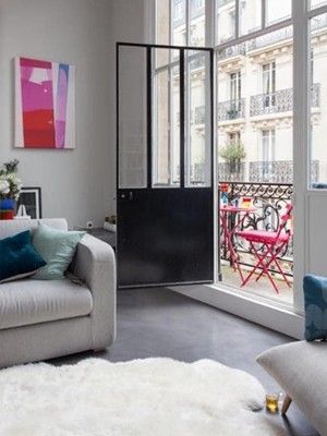 編輯點(diǎn)評(píng):客廳這一側(cè)的色彩是明亮的,大型的玻璃窗將光線引入了室內(nèi)。看那些可愛(ài)的色彩,陽(yáng)臺(tái)上桃紅的的小桌椅,等著給人驚喜。